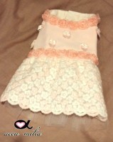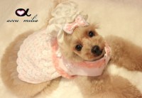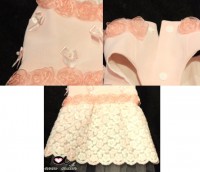 (左上)パールの付いたリボンが沢山ついています (右上)前開きで為着せやすくなっています♪ 生地を合わせている為、ペラペラになりません (下)スカート部分には可愛い刺繍が♪ チュールが付いているので、ふんわり軽い